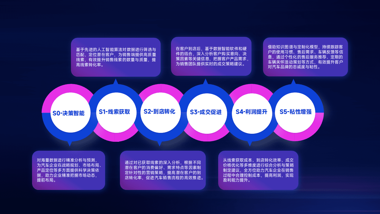 通过拓宽潜在客户来源、、、、优化线索分配并提高到店转化率,,以增强销售效率。。。同时,,,利用线索数据不断优化分析模型,,有效提升转化率,,,扩大营销影响力。。。。